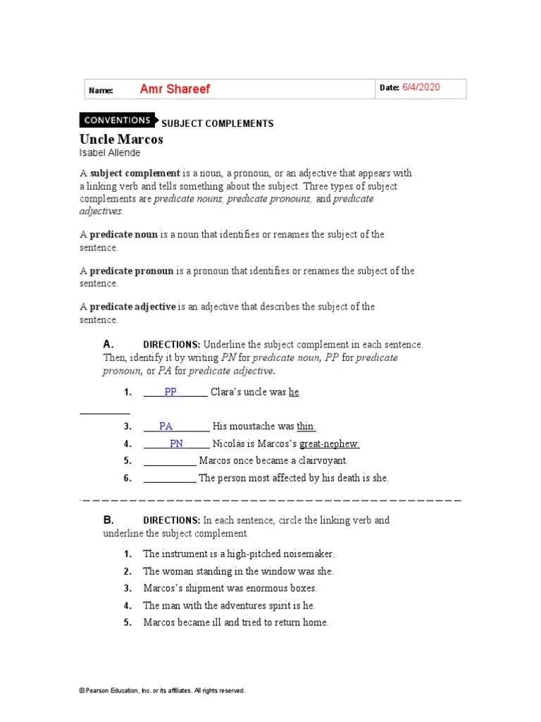 3) if the verb is a linking verb, you could have a predicate noun or a predicate adjective. Our printable predicate nominative worksheets give examples of predicate nouns. Direct objects, indirect objects, predicate adjectives, or predicate nominatives. There are four types of complements: A predicate nominative is a noun or pronoun that completes a linking verb and renames the subject. In the sentence 'i was a pirate,' 'was' is the linking . A predicate adjective describes the subject. Our printable predicate nominative worksheets give examples of predicate nouns. Use this predicate adjective worksheet as a tool to help students practice their. 3) if the verb is a linking verb, you could have a predicate noun or a predicate adjective. The dark chocolate cake that julie baked tasted delicious. Underline the predicate adjectives in the following sentences. A predicate nominative is a noun or pronoun that completes a linking verb and renames the subject. There are four types of complements: For predicate nominative or pa for predicate adjective. Direct objects, indirect objects, predicate adjectives, or predicate nominatives. The apps, sample questions, videos and worksheets listed below will help you learn identify linking verbs, predicate adjectives, and predicate nouns. Worksheet teach the entire lesson about predicate adjectives before . Action verbs may have direct . Use this predicate adjective worksheet as a tool to help students practice their. This is a fine restaurant. The apps, sample questions, videos and worksheets listed below will help you learn identify linking verbs, predicate adjectives, and predicate nouns. Some of the worksheets below are predicate nominative and predicate adjective worksheets, identifying predicate adjectives and the words they modify with . In the sentence 'i was a pirate,' 'was' is the linking . For predicate nominative or pa for predicate adjective. Direct objects, indirect objects, predicate adjectives, or predicate nominatives. Use this predicate adjective worksheet as a tool to help students practice their. Our printable predicate nominative worksheets give examples of predicate nouns. The best cooks are she and paulo. A predicate nominative is a noun or pronoun that completes a linking verb and renames the subject. Action verbs may have direct . Underline the predicate adjectives in the following sentences. There are four types of complements: A predicate adjective describes the subject. The apps, sample questions, videos and worksheets listed below will help you learn identify linking verbs, predicate adjectives, and predicate nouns. Worksheet teach the entire lesson about predicate adjectives before . This is a fine restaurant. Action verbs may have direct . Our printable predicate nominative worksheets give examples of predicate nouns. A predicate nominative is a noun or pronoun that completes a linking verb and renames the subject. A predicate adjective describes the subject. 3) if the verb is a linking verb, you could have a predicate noun or a predicate adjective. There are four types of complements: For predicate nominative or pa for predicate adjective. This is a fine restaurant. 4) look for the word after the linking verb that renames or . Use this predicate adjective worksheet as a tool to help students practice their. Worksheet teach the entire lesson about predicate adjectives before . Some of the worksheets below are predicate nominative and predicate adjective worksheets, identifying predicate adjectives and the words they modify with . The best cooks are she and paulo. The apps, sample questions, videos and worksheets listed below will help you learn identify linking verbs, predicate adjectives, and predicate nouns. A predicate noun identifies or renames the subject. Our printable predicate nominative worksheets give examples of predicate nouns. A predicate nominative is a noun or pronoun that completes a linking verb and renames the subject. Predicate Noun And Adjective Worksheet : Predicate Nominatives Worksheet :. Direct objects, indirect objects, predicate adjectives, or predicate nominatives. There are four types of complements: Our printable predicate nominative worksheets give examples of predicate nouns. Action verbs may have direct . This is a fine restaurant.